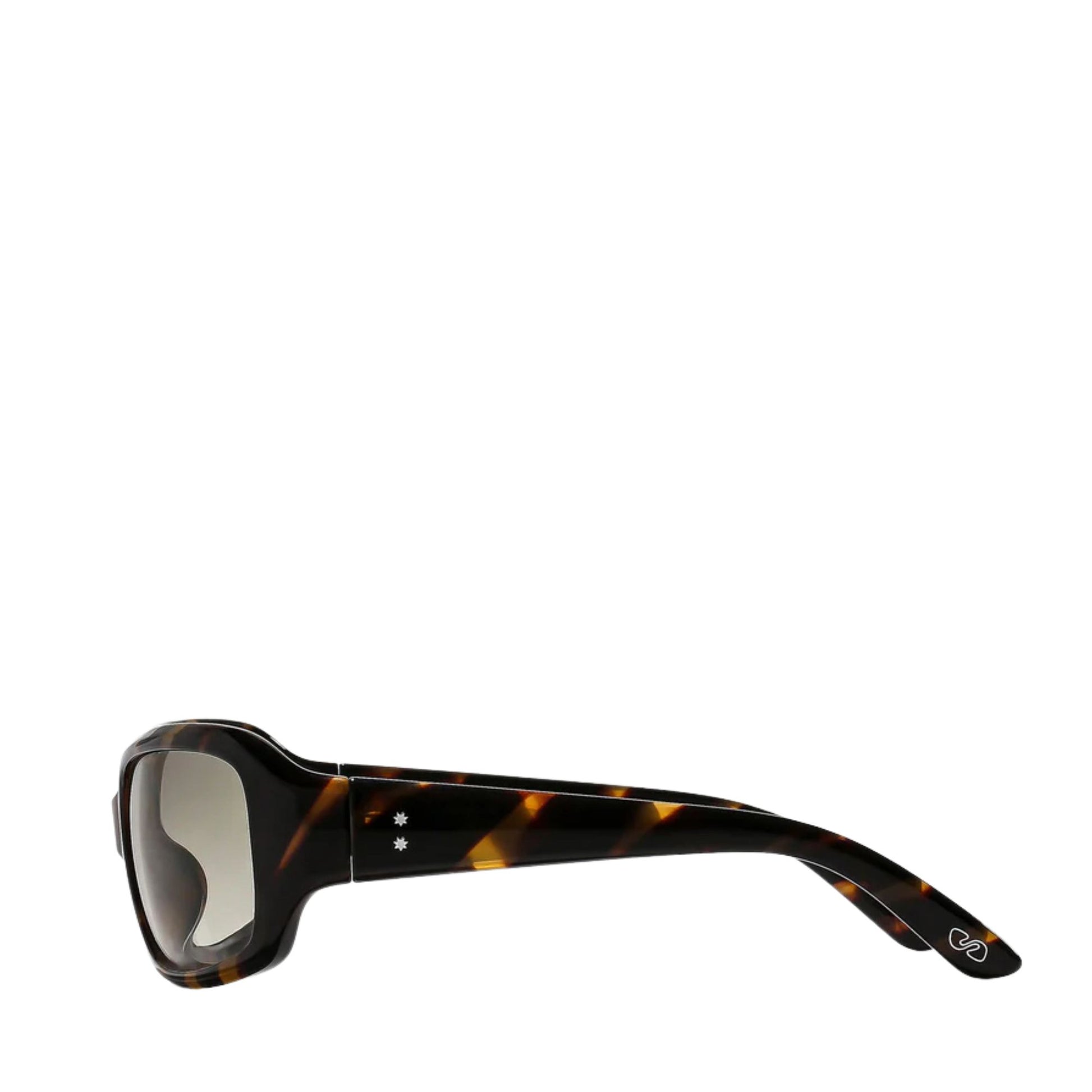 meet farrow ; a contemporary rectangular sunglass with statement bevels and contours to frame the face. inspired by the vintage sunglasses worn by Alain Delon in 'La Piscine' and 'The Sicilian Clan' this frame delivers 60's sex appeal and modern edge. a must-have tortoiseshell sunglass to instantly elevate any look.