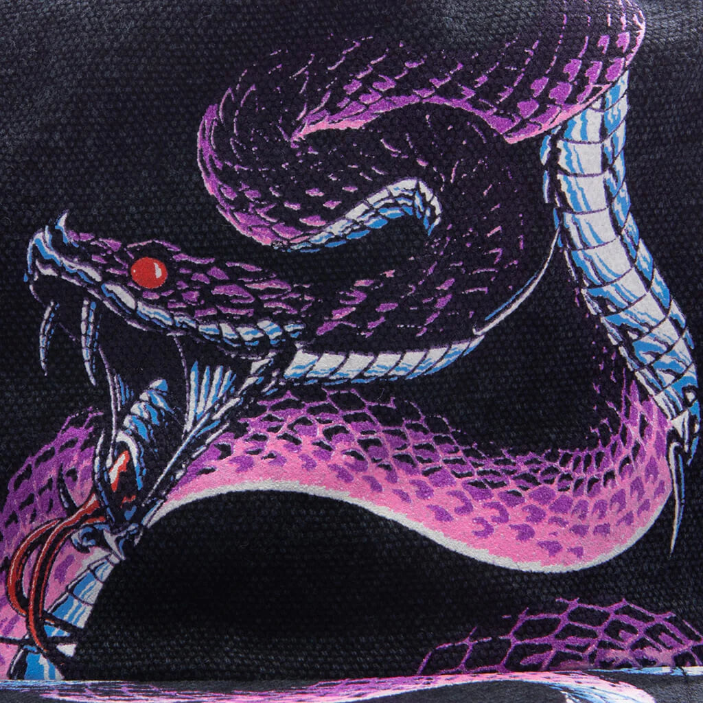 The Pit Viper Hat from D-R-G-N is the latest addition to its headwear collection. The hat takes on a 6-panel construction design. Including an adjustable strapback closure and flat brim. A screen-printed graphic is placed on the front, while the stitched D-R-G-N bar on the interior adds signature branding.