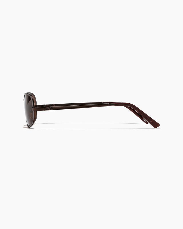 Meet Rush ; a true late 90's / early 2000's inspired minimalist rectangular sunglass. bringing the best of simple modernity, clean lines and sleek finishes, this petite frame boasts a sweeping b line and flattering lens proportions. don't miss the scooped out temple details featuring our signature szade logo, comfortable acetate tips and adjustable nose pads. the next 'it' sunglass of the summer has arrived in a chic matte chocolate brown colorway.